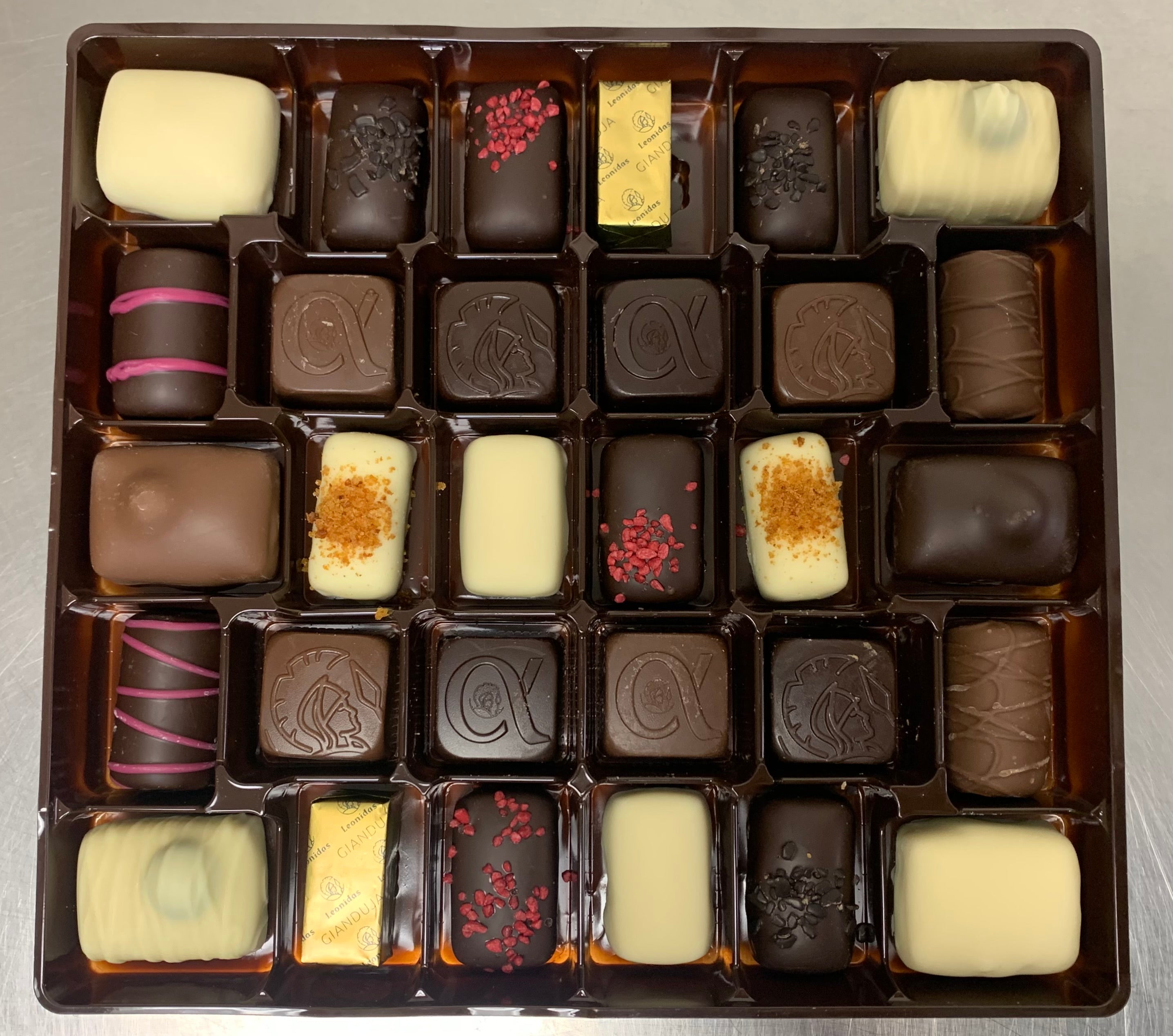 Our modernized Gold Tin is a wonderful gift to share with friends and family. Opened up and view an array of 30 pieces of a balanced selection of Leonidas' most popular pieces. Manons, caramels, and pralines- giving a selection where everyone can find a favorite.